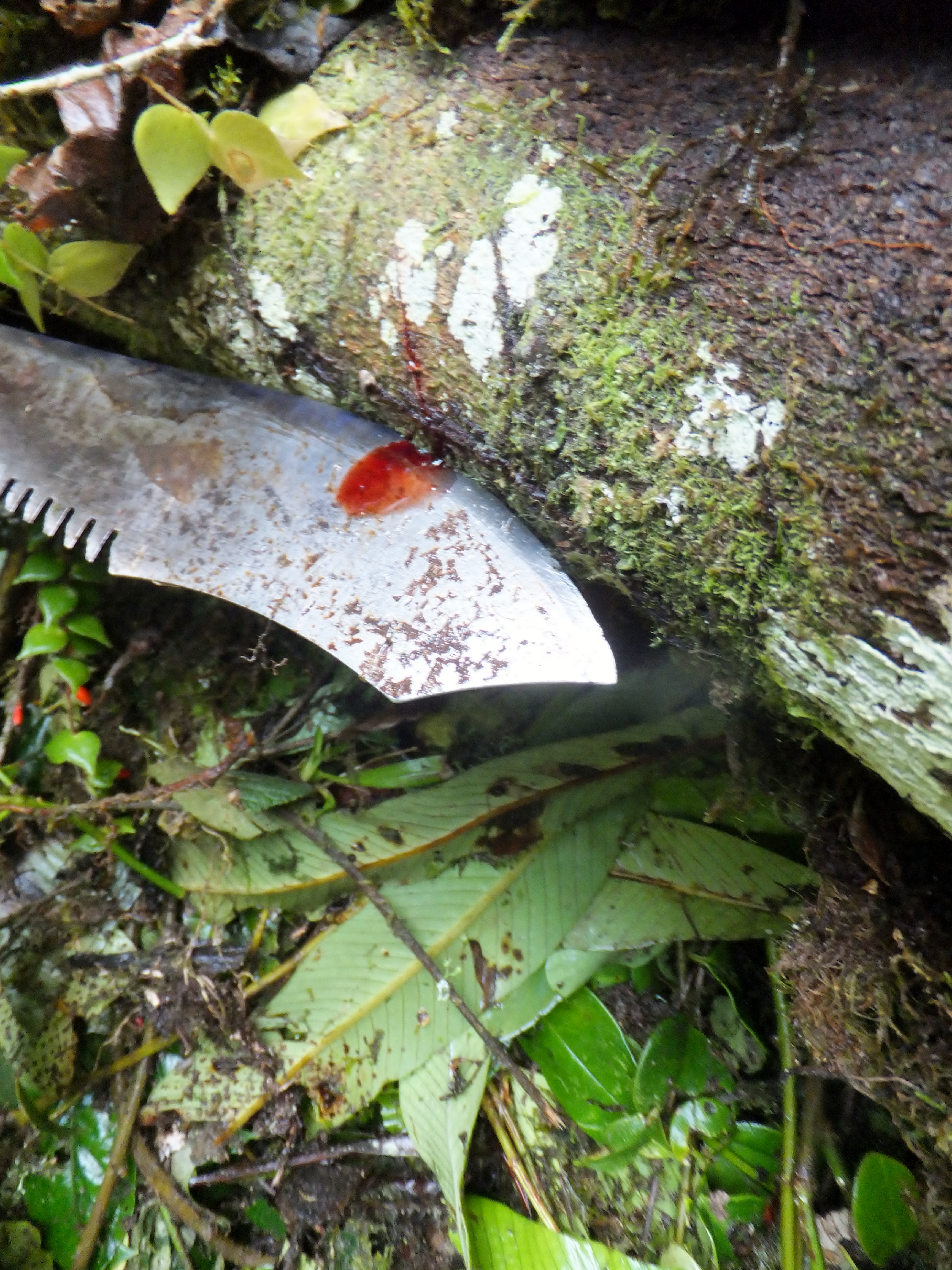 Roberto led us along, tromping across the river in our tall rubber boots to a part with many felled trees. He started hacking around with his machete until he found a specific tree, el Arból de Sangre del Drago (Drago Blood Tree). He cut a slice into it and a red blood-like substance started to pour onto his machete. Roberto then put this blood on his hand and explained that it can be eaten to cure stomach issues. As he started to rub it into his hand, the blood turned into a white cream, which can be used to disinfect and speed up the scabbing process of wounds, as well as used as a bug repellent and sunscreen. This one tree of the entire forest can be used for many purposes, but depends entirely on the existence of the other species throughout.